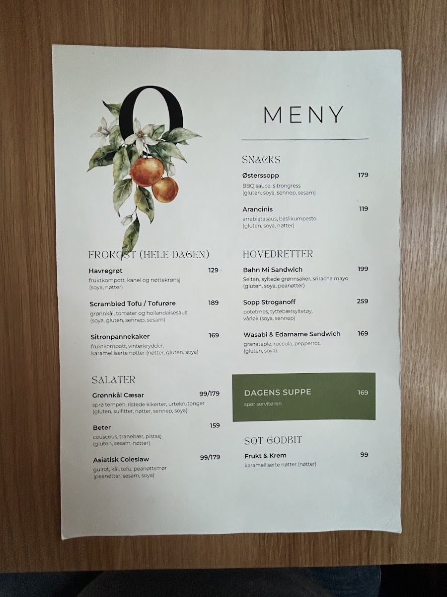 Kafe Oransjeriet Menu